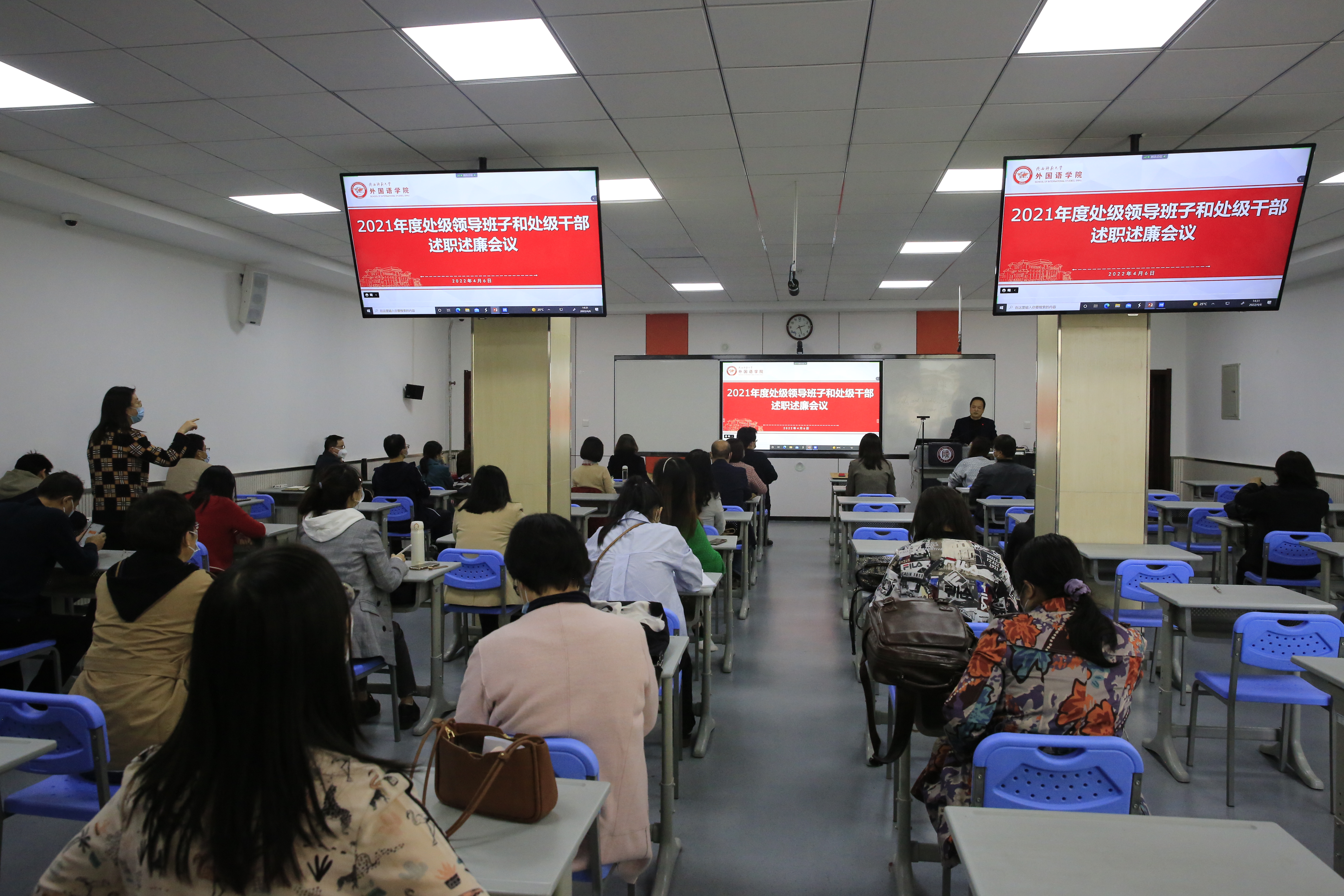 4月6日下午,76net必赢官网手机版2021年度处级领导班子和处级干部述职述廉会议暨2022年工作部署会在雁塔校区教学六楼召开。