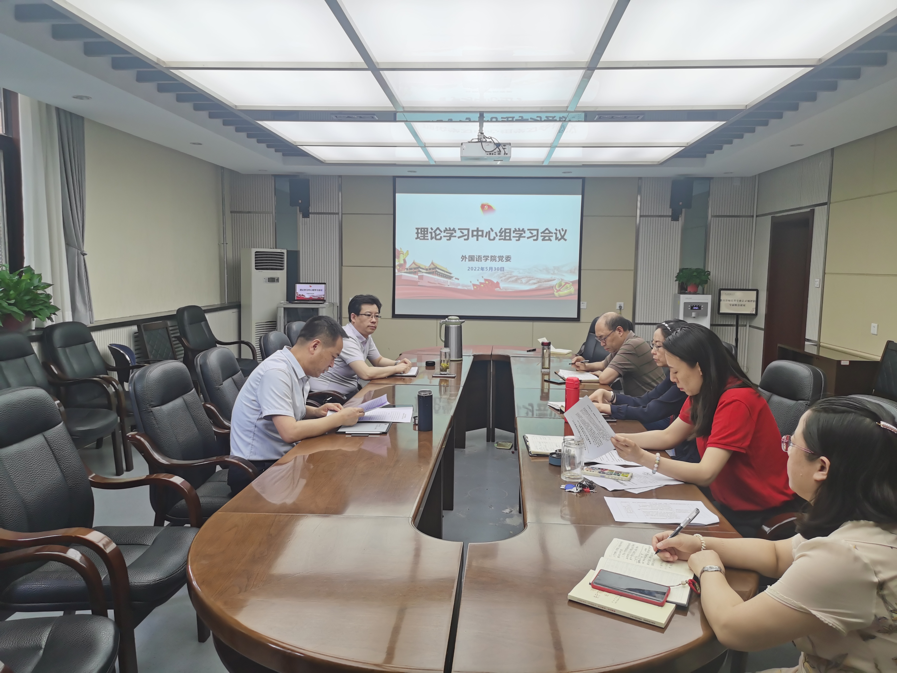 5月30日下午4时,76net必赢官网手机版党委在教学六楼学院会议室召开了理论学习中心组会议。学院党委书记董增云,院长刘全国,副院长孙坚、吕敏宏、曹婷,党委委员王艳滨,参加了此次会议。学习由院党委书记董增云主持。