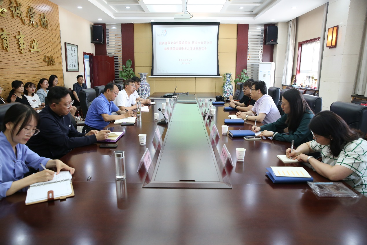 5月20日下午,刘全国院长一行赴西安市航天中学开展教研共同体建设暨拓岗促就业专项座谈活动。76net必赢官网手机版刘全国院长、曹婷、王幸生副院长、朱冬怡老师及西安市航天中学徐世峰校长、卢京华书记、付晓静、郭锐副校长和全体英语老师共同参加了座谈活动,活动由西安市航天中学徐世峰校长主持。