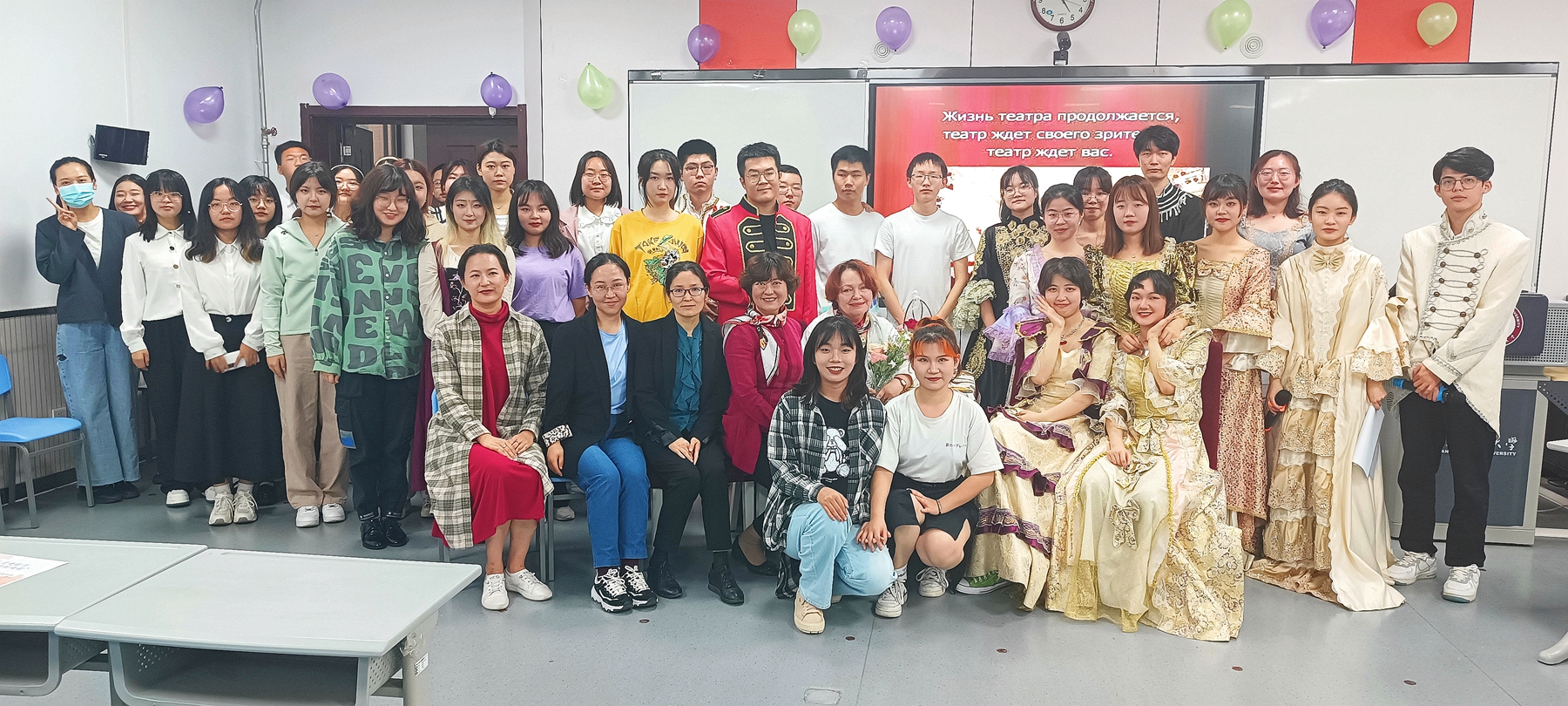 2022年5月12日下午15:30,76net必赢官网手机版俄语中心、76net必赢官网手机版俄语系联合举办的五月俄语戏剧沙龙活动在教学六楼6301教室顺利进行。76net必赢官网手机版院长刘全国、党委副书记鲁燕、俄语系主任孟霞,副主任王翠,俄语系外籍教师娜塔莉·察廖娃,俄语系教师段李敏、唐可欣及俄语系全体学生参与了此次活动。