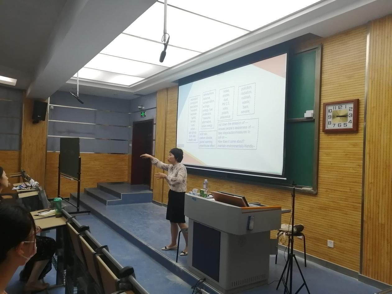 首先,李革菊老师简单阐明了教学理念与实践之间的关系:心中有人,心中有标,取材有料,教学有法。如此,便巧妙地将理论与实践结合起来,使之后的讲解联系实际、有据可依。接着,李革菊老师深入探讨了高中教学法,具体分析了“以学习为中心”的课堂、“练习为中心的备考”以及“英语教学实例”。在李老师的引导下,同学们深入了解了“学习为中心”的课堂的主要特征。在此基础上,李革菊老师结合“练习为中心的备考”,分享了多样化的英语教学方法,如词汇学习多样化和语法学习生活化等。