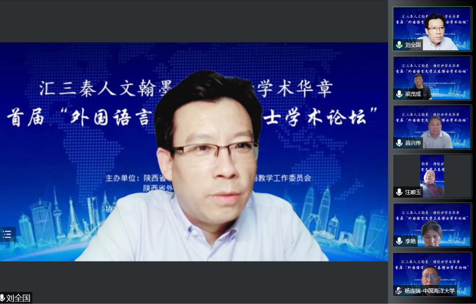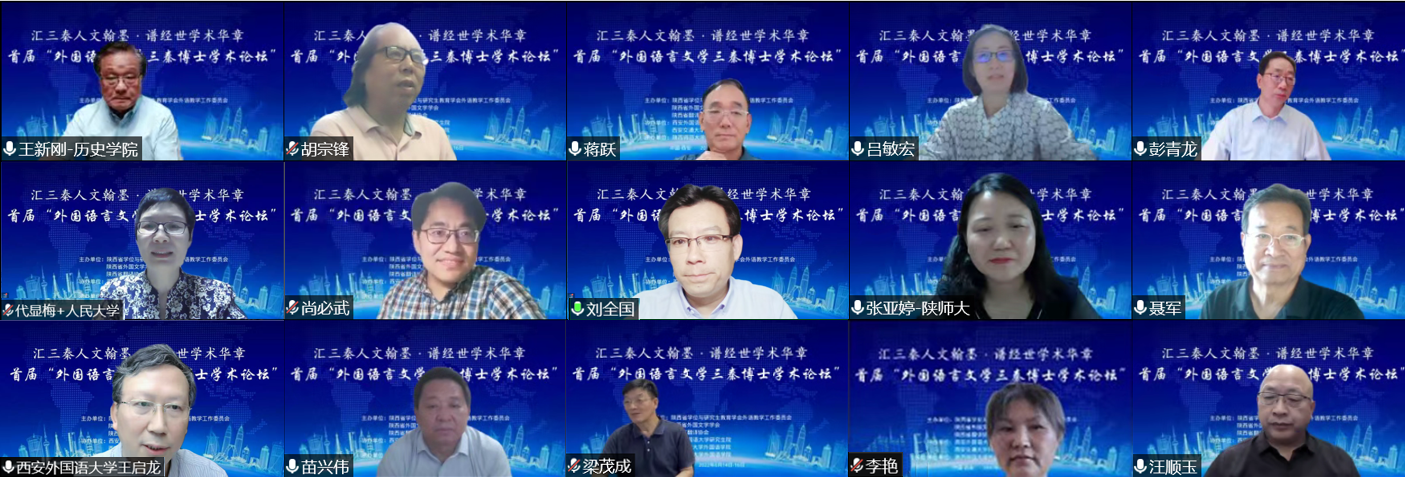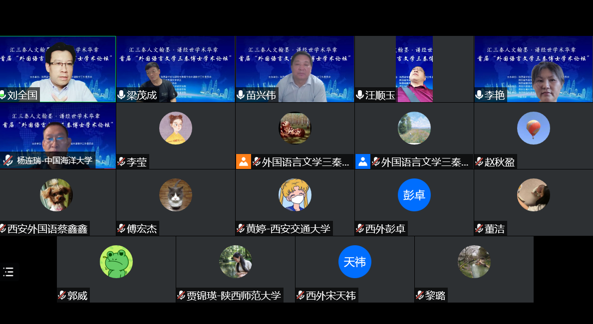 2022年6月14日—16日,由陕西省学位与研究生教育学会外语教学工作委员会、陕西省外国文学学会、陕西省翻译协会主办,西安外国语大学研究生院、西安交通大学76net必赢官网手机版协办,76net必赢官网手机版承办的首届“外国语言文学三秦博士学术论坛”于线上会议顺利举行。