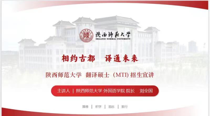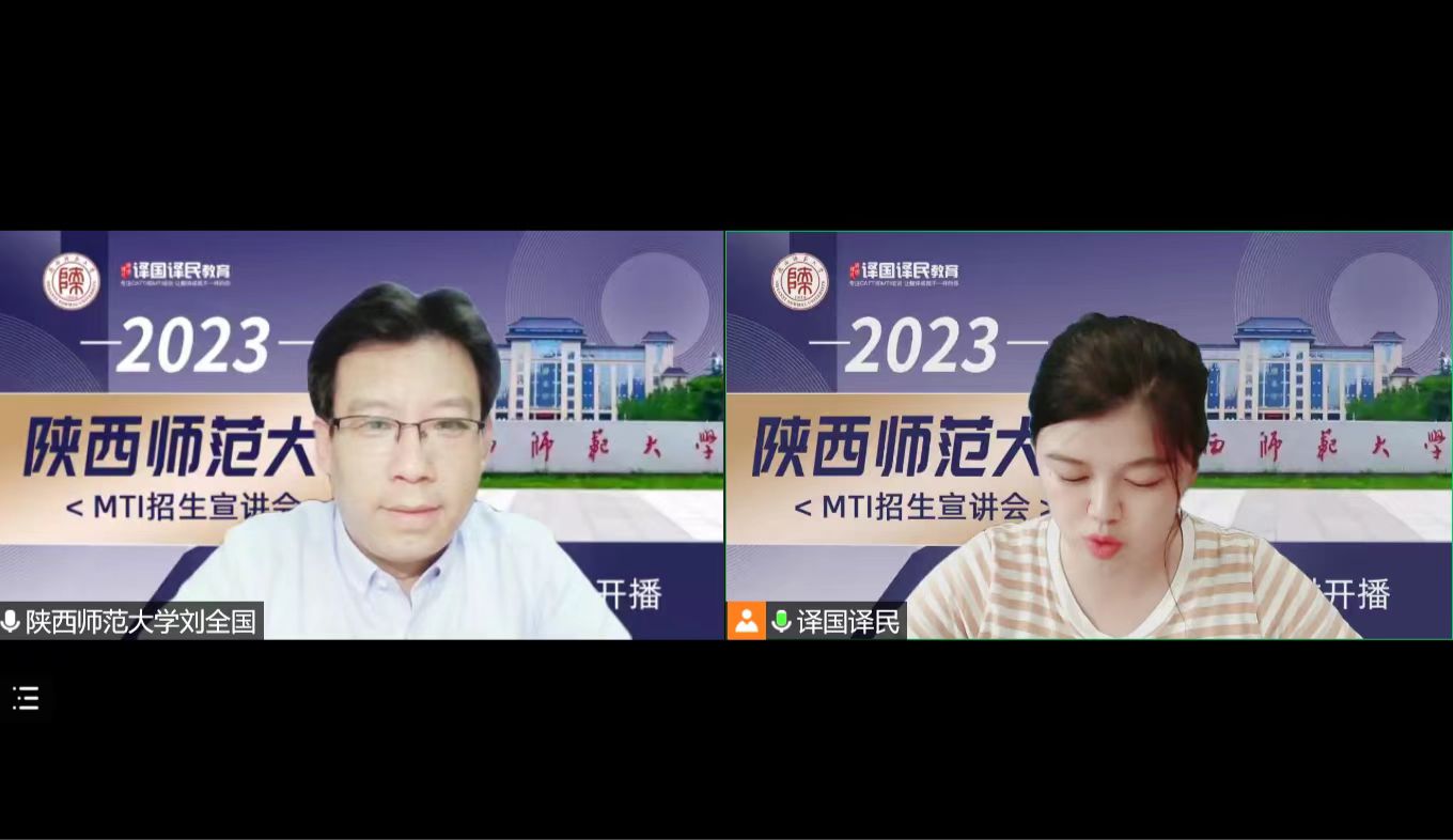 应“译国译民”教育平台邀请,76net必赢官网手机版院长、MTI中心主任刘全国教授于2022年8月16日下午15:00做了题为“相约古都 译通未来”的MTI在线招生宣讲报告。全国多所院校在读本科生、多家翻译公司总经理和多所高校MTI负责人等200余人参加了宣讲会,并参与互动提问。