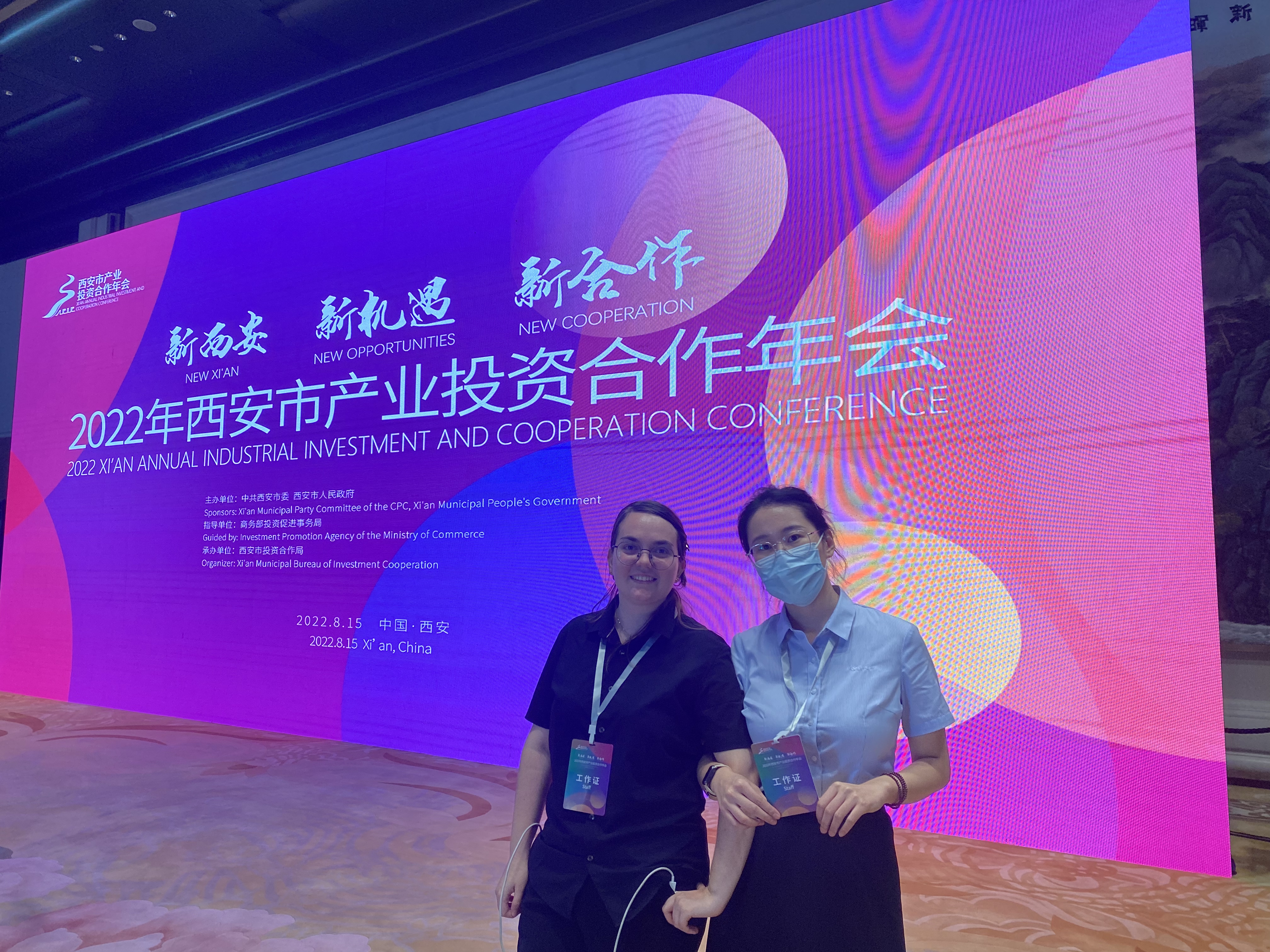 2022年8月15日,由中共西安市委、西安市人民政府主办的“西安市产业投资合作年会”召开,受学院MTI教育中心委派,76net必赢官网手机版2021级翻译硕士研究生张江薇、王一翔、列拉以西安市投资合作局实习生身份担任年会工作人员,负责会场布置、候场、转场等工作。