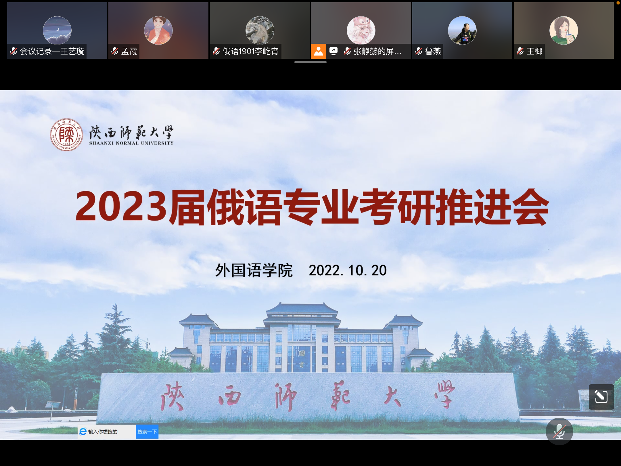 为增强同学们的考研信心和动力,76net必赢官网手机版于10月20日上午通过腾讯会议线上召开2023届俄语专业考研推进会。俄语系主任孟霞老师和俄语1901班全体考研学生共同参加。会议由学院党委副书记鲁燕老师主持。