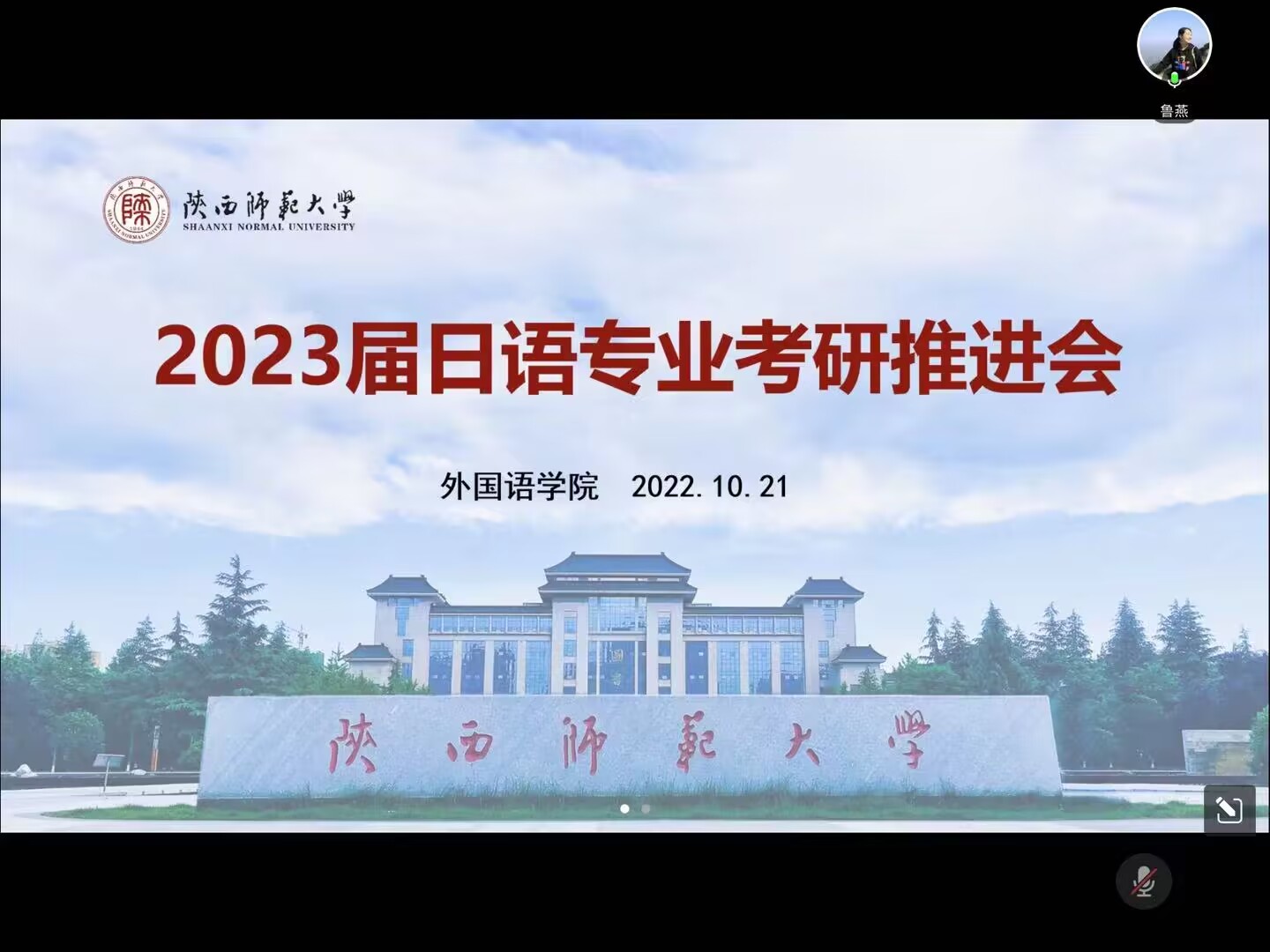 为树立同学们的考研信心,加强考研同学之间的交流互动,76net必赢官网手机版于10月21日晚上7点半在线上召开2023届日语专业考研推进会。学院副院长,日语系主任曹婷、党委副书记鲁燕、日语系副主任许赛锋和日语系教师史曼共同参加。会议由辅导员屈婉婷老师主持。