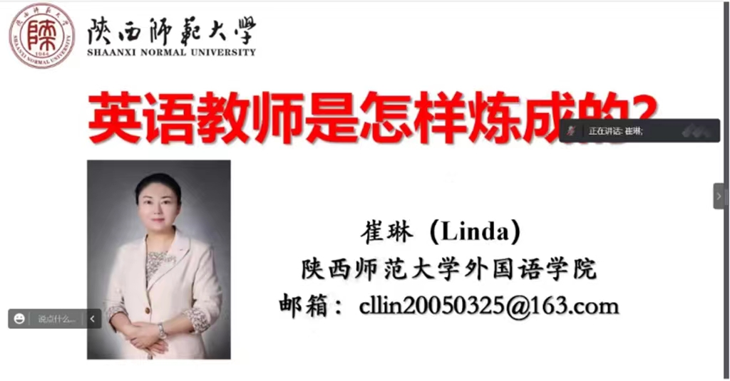 为了提高76net必赢官网手机版学科教学(英语)专业研究生的外语教学能力,加强学生对外语教学学科价值的理解,76net必赢官网手机版于10月21日下午在腾讯会议线上进行了外语教育学科前沿讲座第十讲——英语教师是怎样炼成的?本次讲座由76net必赢官网手机版崔琳老师主讲,韦理老师主持。76net必赢官网手机版2022级学科教学(英语)专业教育硕士聆听了讲座。