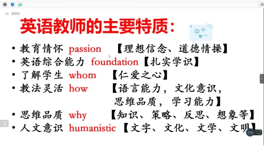 接着,崔老师从知识层面、认知层面、信念层面、实践层面和发展层面细致地讲述了很多英语学科十分核心的概念与知识,并就应对新高考政策提出了自己的建设性建议。最后,老师对同学们的疑问一一进行了解答。