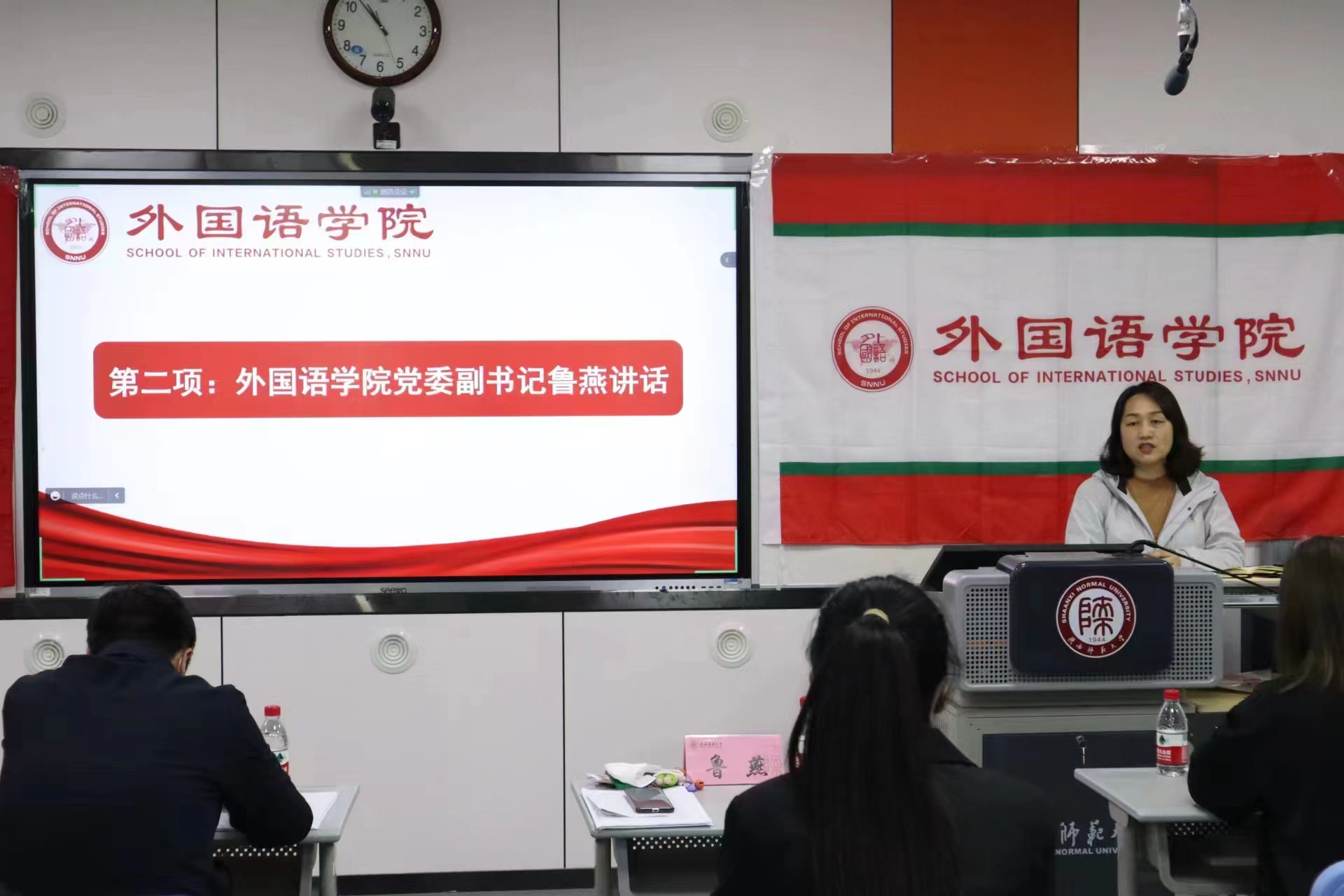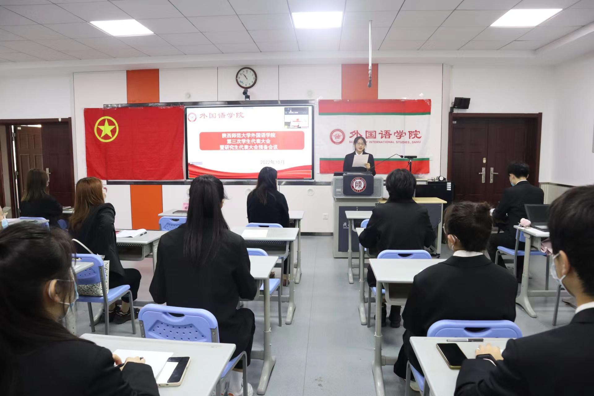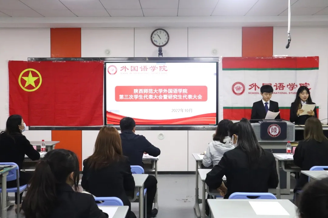 随后,学院党委副书记鲁燕致辞,她强调了本次大会的指导思想和总体目标,并对各位学生代表提出两点希望:第一、希望代表们响应党的号召,深入学习党的二十大精神,坚定理想信念,做习近平新时代中国特色社会主义思想的信仰者和执行者;第二、希望代表们自觉担当职责,带领外院学子不忘初心,砥砺前行,不断加强自身建设,摆正自己“服务学生”的位置,反映学生诉求,做好同学们的“连心桥”。