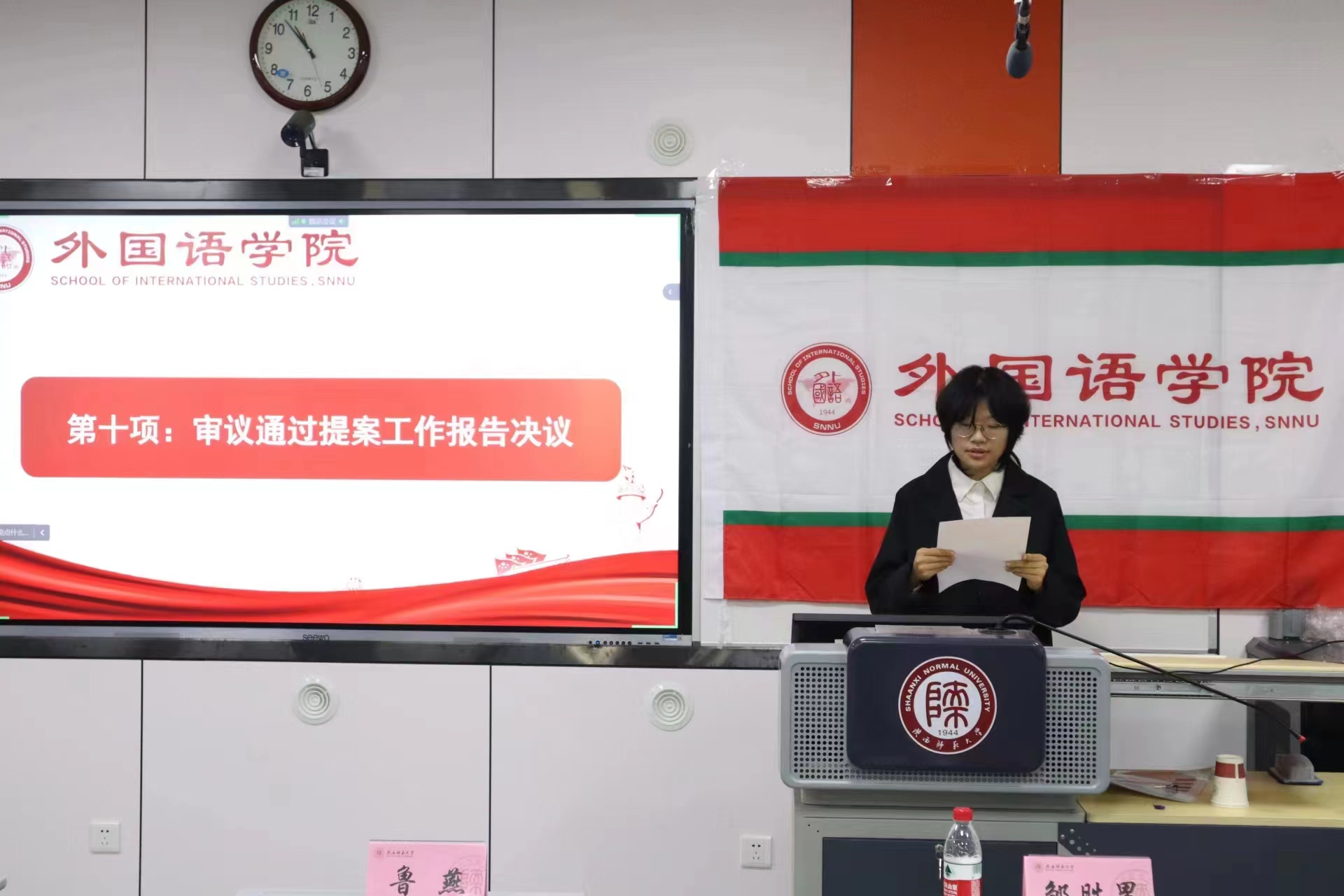 迟昕雨、马曦分别宣读本科生及研究生提案工作报告,提出了同学们普遍关心和亟待解决的问题。