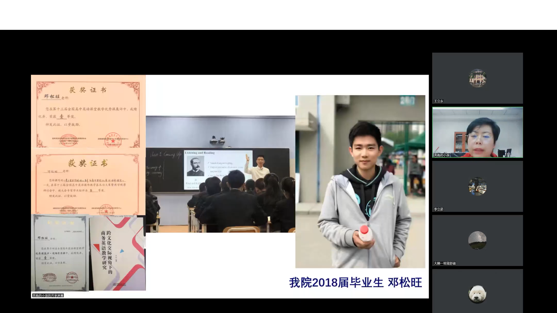 2022年11月11日晚,76net必赢官网手机版一流本科专业建设论坛之与基础教育名师面对面活动邀请76net必赢官网手机版2022届优秀校友、山西省实验中学高级教师王瑞敬通过腾讯会议就公费师范生的求职面试、专业能力提升和班级管理艺术开展专题讲座。本次讲座由英语系副主任王立永副教授主持,李立茹老师和200余名公费师范生参加了讲座。