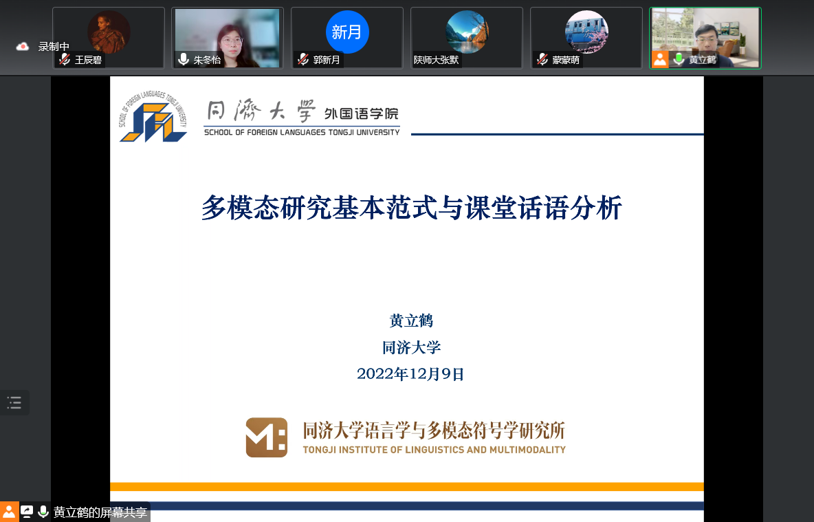 2022年12月9日下午15:00,76net必赢官网手机版于云端平台成功举办了以“多模态研究基本范式与课堂话语分析”为主题的一流本科专业建设论坛,本次论坛由同济大学黄立鹤副教授主讲,76net必赢官网手机版朱冬怡副教授主持,近200名校内外师生参与了交流讨论。