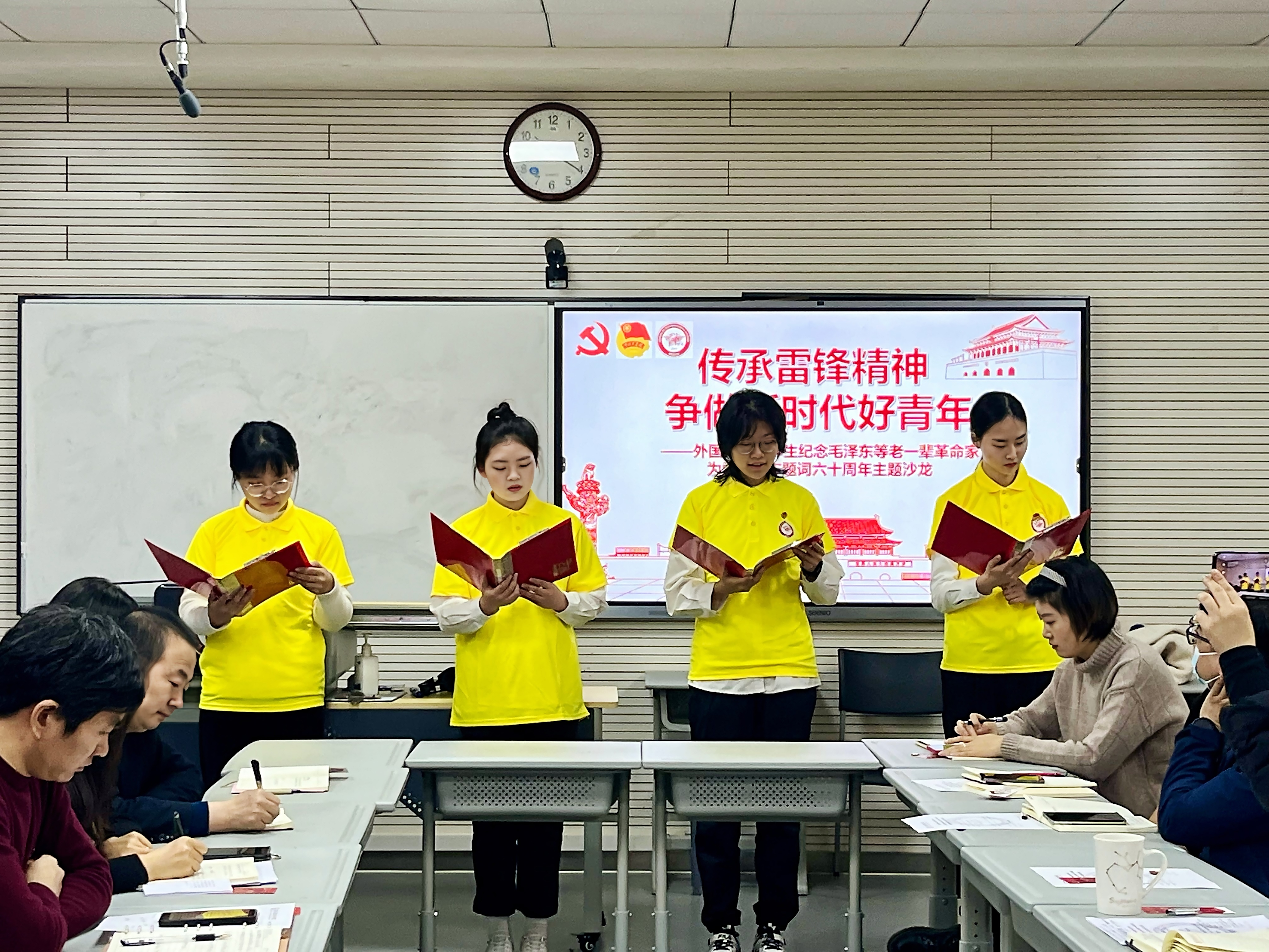为纪念毛泽东等老一辈革命家为雷锋同志题词六十周年,进一步学习贯彻党的二十大精神,传承和弘扬新时代雷锋精神。2月28日,76net必赢官网手机版师生纪念毛泽东等老一辈革命家为雷锋同志题词六十周年主题沙龙于教学六楼6314召开,76net必赢官网手机版党委书记董增云、学院行政党支部成员、76net必赢官网手机版学工干部及学生代表共30余人参与。学院党委副书记鲁燕主持。