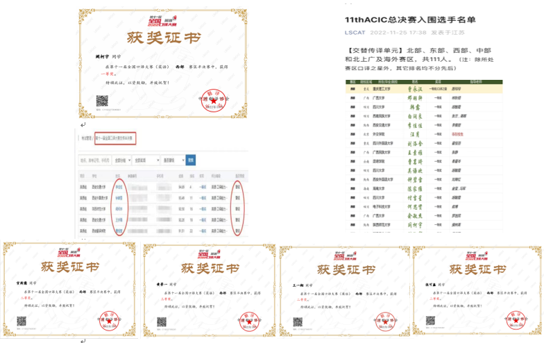 第十一届全国口译大赛总决赛于近期落下了帷幕,76net必赢官网手机版在此次大赛中获得了喜人成绩。全国口译大赛以中国外文局为指导单位,中国翻译协会主办,是国内专业权威度极高的口译比赛。此次大赛自2022年3月启动,受疫情影响,初赛,陕西省复赛,大区赛,全国总决赛分别于5月28-29日,6月25-26日,9月24-25日,12月17-18日在线上举行。
