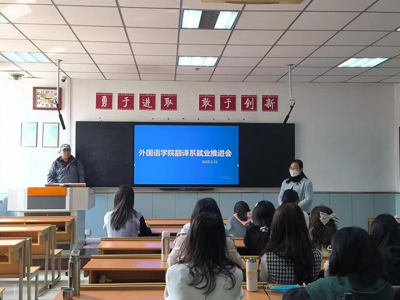 为切实做好76net必赢官网手机版本科生就业指导工作,精准掌握2023届本科生翻译专业毕业生求职进展,76net必赢官网手机版于3月21日下午在教学四楼4102召开2023届翻译专业学生就业工作推进会。学院副院长孙坚、翻译系主任操林英、辅导员屈婉婷与全体翻译专业2023届毕业生共同参加。