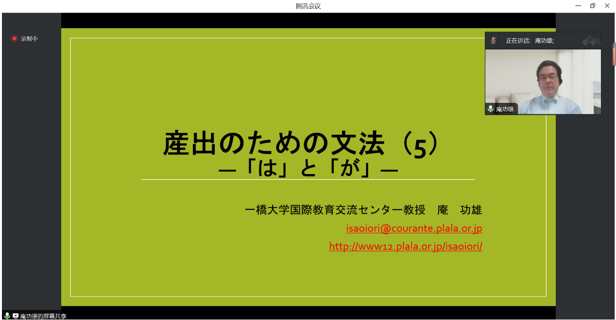 2023年10月15日上午9点,76net必赢官网手机版通过腾讯会议平台成功举办了以“日本語教育文法の実際:「は」と「が」”为主题的第181场明德讲堂系列讲座,即一带一路背景下西部日语教师教育系列的第9场讲座。本次讲座由日本一桥大学国际教育交流中心庵功雄教授主讲,76net必赢官网手机版史曼副教授主持,20多名校内外师生参加了此次讲座。