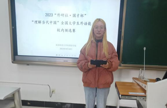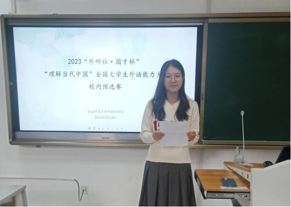 预选赛由笔试和定题演讲两个环节组成。选手们在规定时间内,认真完成了以翻译和作文为主的综合考试后,逐一上台进行定题演讲。同学们的演讲内容丰富多彩,日语发音纯正流利,妙语连珠,博得了台下听众阵阵掌声。最终,黄楠楠、吉妍两位同学凭借扎实的日语翻译写作功底及精彩的演讲表现在初赛中胜出,获得了本届“外研社·国才杯”多语种组的省赛资格。