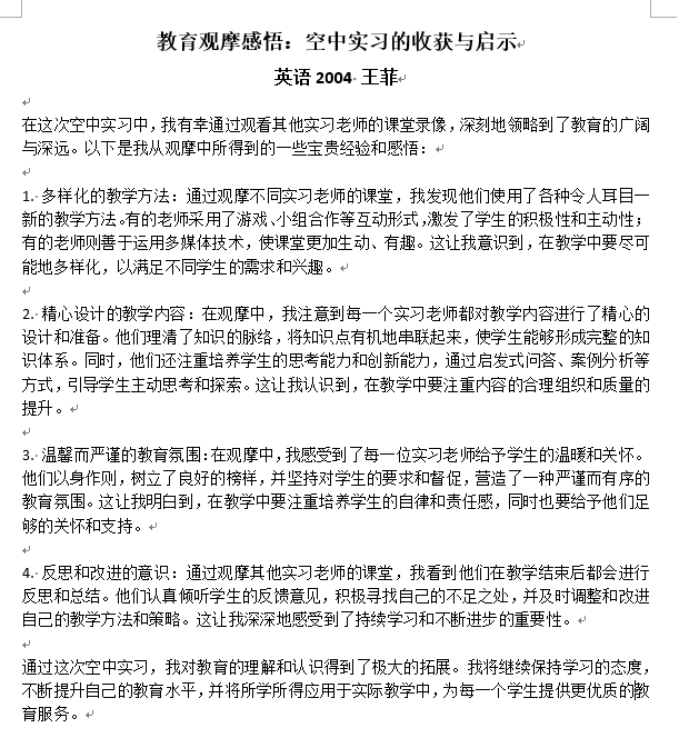 通过空中实习观摩活动,同学们对教育实习有了更加全面和清晰的认识。今后工作中,英语系也将以实习观摩为切入点,总结经验,发现问题,认真反思,为后续的教育实习、见习和研习,以及人才培养质量提升修整出更加切实的方案,提升师范生师德践行能力,教学实践能力,综合育人能力和自主发展能力。
