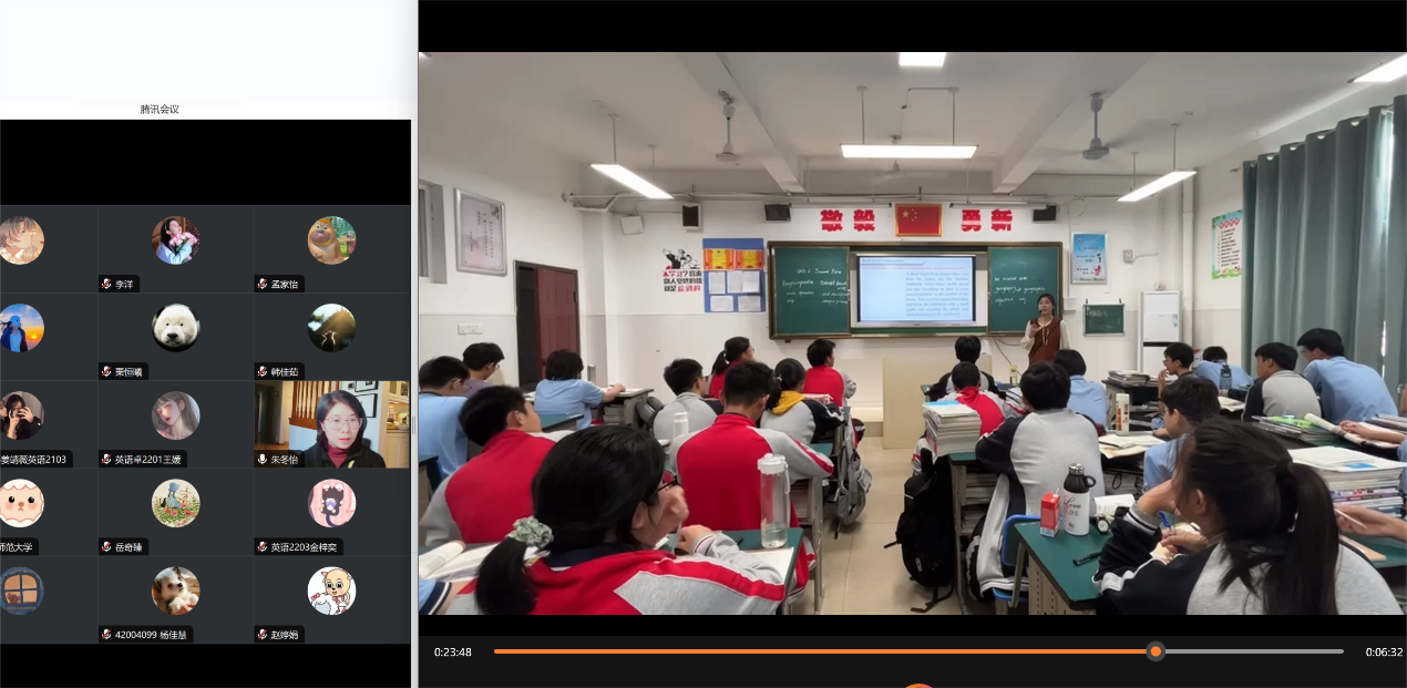 为深入实施本科教育质量提升工程,培养师范生专业素养,促进教育实习学生之间的学习经验交流,提高学生从师任教专业水平,展示教育实习阶段性成果,11月11日上午,76net必赢官网手机版英语系开展了线上师范生教育实习“空中教学观摩”活动。英语系系主任朱冬怡主持观摩会议,150余名各级公费师范生参加此次观摩活动。