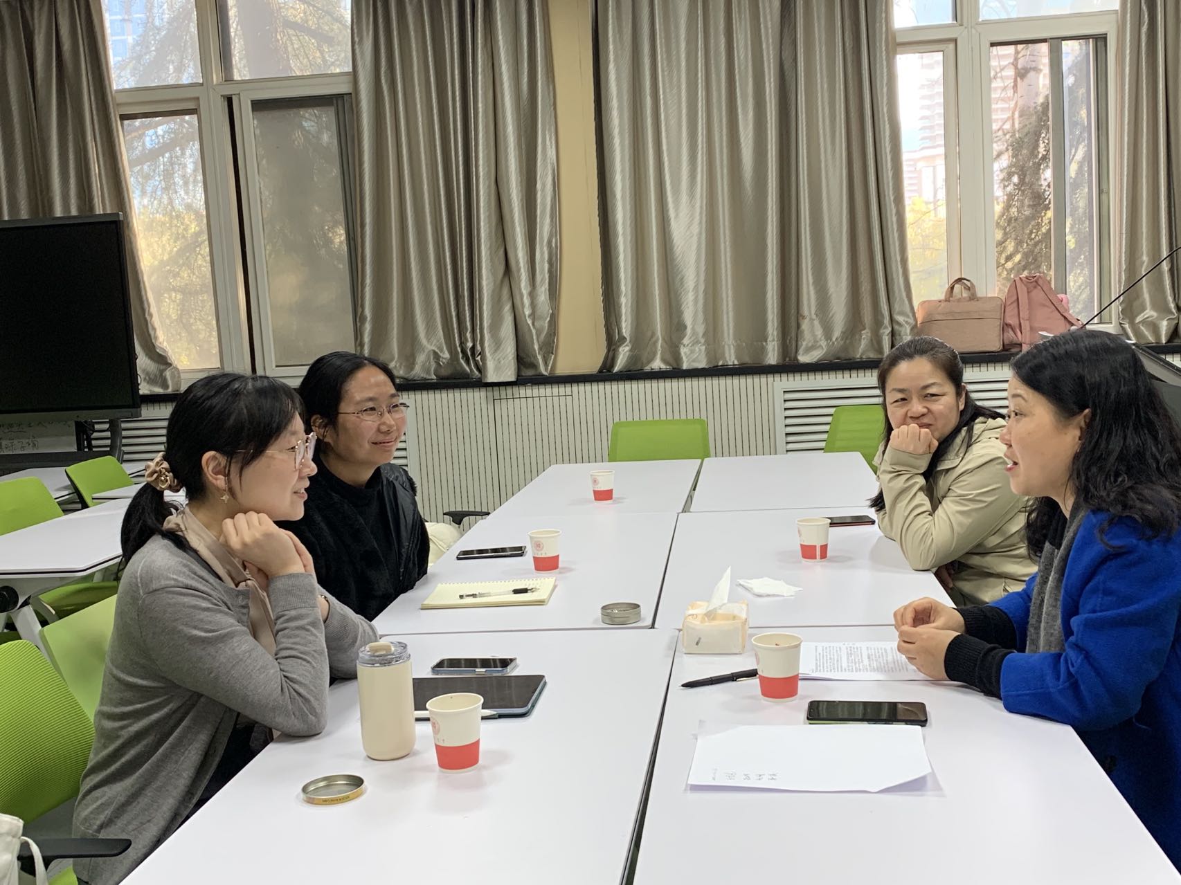 在交流环节张亚婷教授表示英国的第一次文化输出是亚瑟王的故事,传到了法国和德国等欧洲国家,英法文学之间相互影响有很多共通之处。老师们在交流中以特里斯丹和伊瑟的故事为例,探讨了欧洲中典型的人物形象在欧洲多国文学中的不同之处。赵玥老师提出较于中国文学中的爱情,法国的爱情文学更注重对激情的追寻。