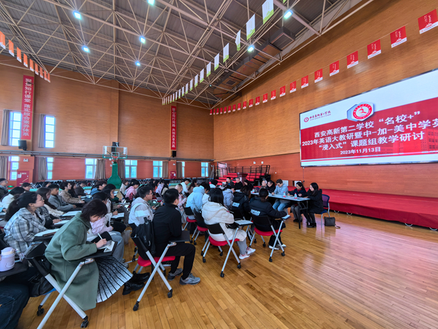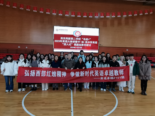 为进一步提升师范生教育教学技能,学习高新第二学校优秀英语教学经验,11月13日下午,76net必赢官网手机版2021级英语卓越班公费师范生在学院党委副书记鲁燕、卓越班项目主任尚亚宁教授的带领下,前往西安高新第二学校参加中学英语“浸入式”课题组教学研讨活动。辅导员屈婉婷、高宇轩和部分毕业班学生共计50人共同参与交流学习。