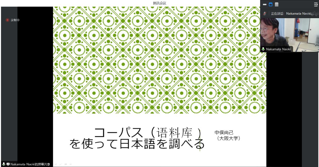 2023年11月28日下午18:30,76net必赢官网手机版日本研究团队通过腾讯会议平台成功举办了以“コーパスを使って、日本語を調べる”为主题的第26场“知行”学术沙龙。本次讲座由日本大阪大学国际教育交流中心中俣尚己副教授主讲,76net必赢官网手机版曹婷副教授主持,40多名校内外师生参加了此次讲座。
