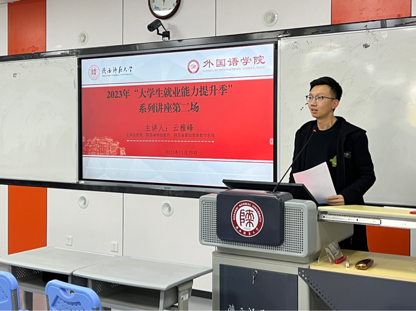 为进一步激励76net必赢官网手机版学生就业热情,提升求职就业能力,76net必赢官网手机版于11月29日15:00在雁塔校区教学六楼6301教室举办了2023年“大学生就业能力提升季”系列讲座的第二场报告会。76net必赢官网手机版院友、正高级教师、陕西省特级教师、陕西省基础教育名师云雅峰受邀主讲了主题为“带着爱与梦想,在追光之路上成为最好的自己”的讲座,76net必赢官网手机版2024届毕业本科生和研究生积极参加本次讲座。本次讲座由毕业班辅导员高宇轩主持。