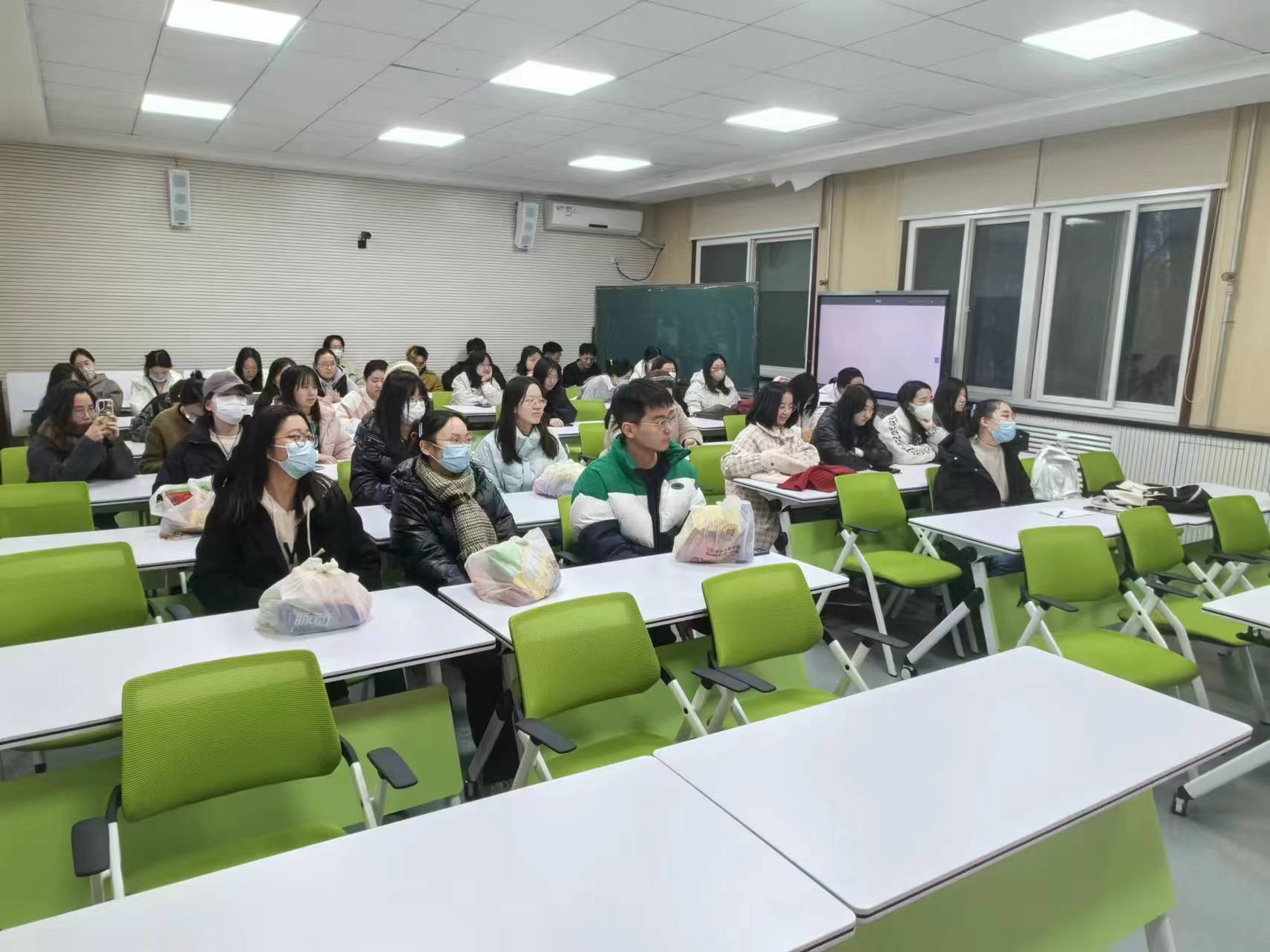 刘全国院长谈到,考研是一场没有硝烟的战争,同学们选择了一条长远发展的道路,在最后不到一个月的时间,大家应该开阔思维结构、调整心理状态,明确自己的目的,明白考研是为了什么,自己究竟想要什么。刘院长鼓励同学们要克服困难和压力,坚持信心和毅力,并为考研学子送上了真挚的祝福,祝愿大家都能够成功考取自己理想的院校。随后,高宇轩结合自身考研进行了分享,鼓励同学们放平心态,劳逸结合,在考场上发挥出自己的最好水平。之后,刘全国与高宇轩两位老师为2024届考研学生发放慰问品,并互动交流。