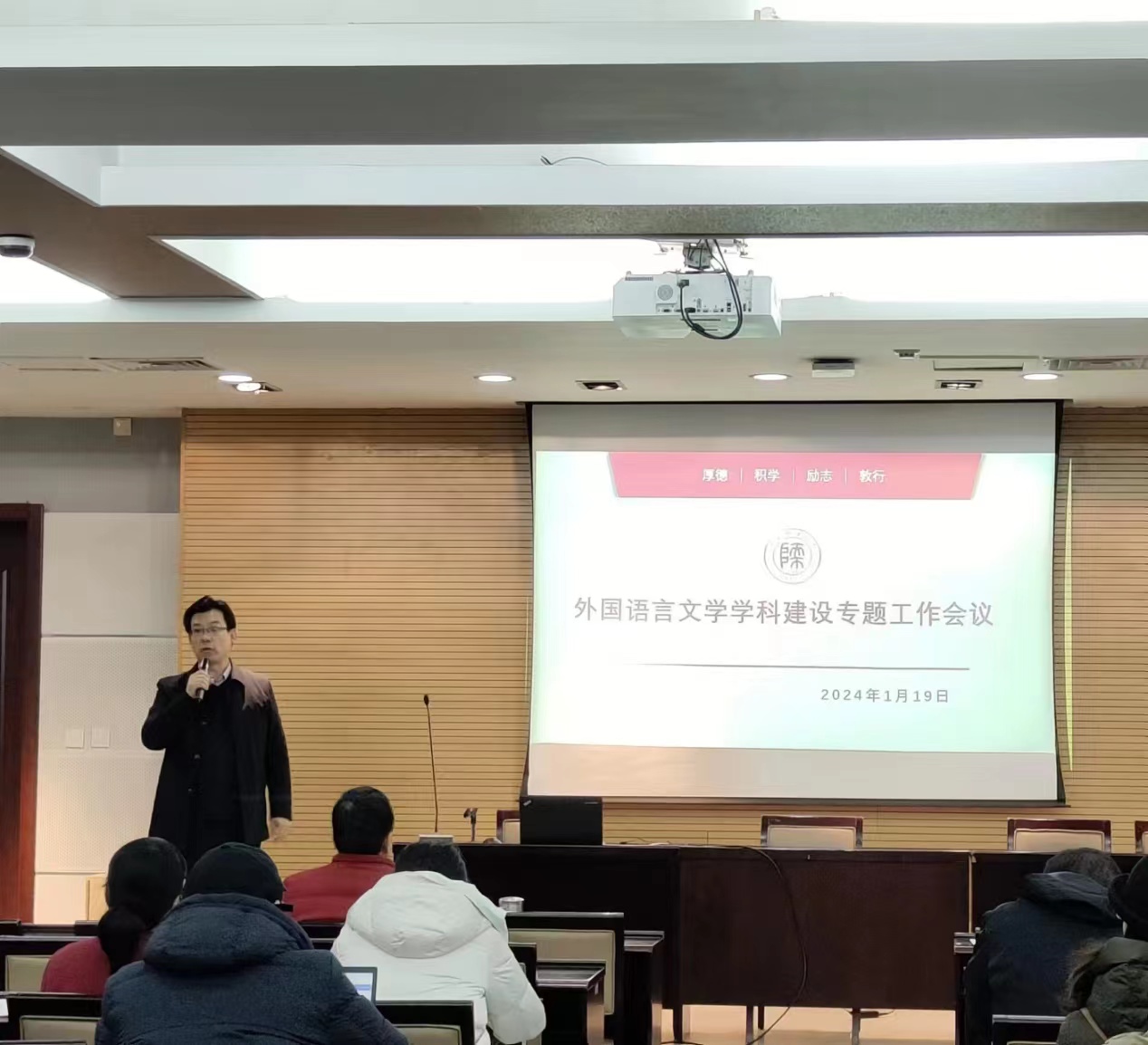 会议伊始,76net必赢官网手机版院长刘全国教授提到了外国语言文学学科面临的形势,指出要促进学科建设和转型,并介绍了学科结构以及当前存在的问题,进一步提出了学科发展方向和举措,提出要继续开展学术活动,加强学术交流,积极引进外部人才,注重内部人才的培养,强化师资队伍建设,同时要做到教学和科研的均衡发展。