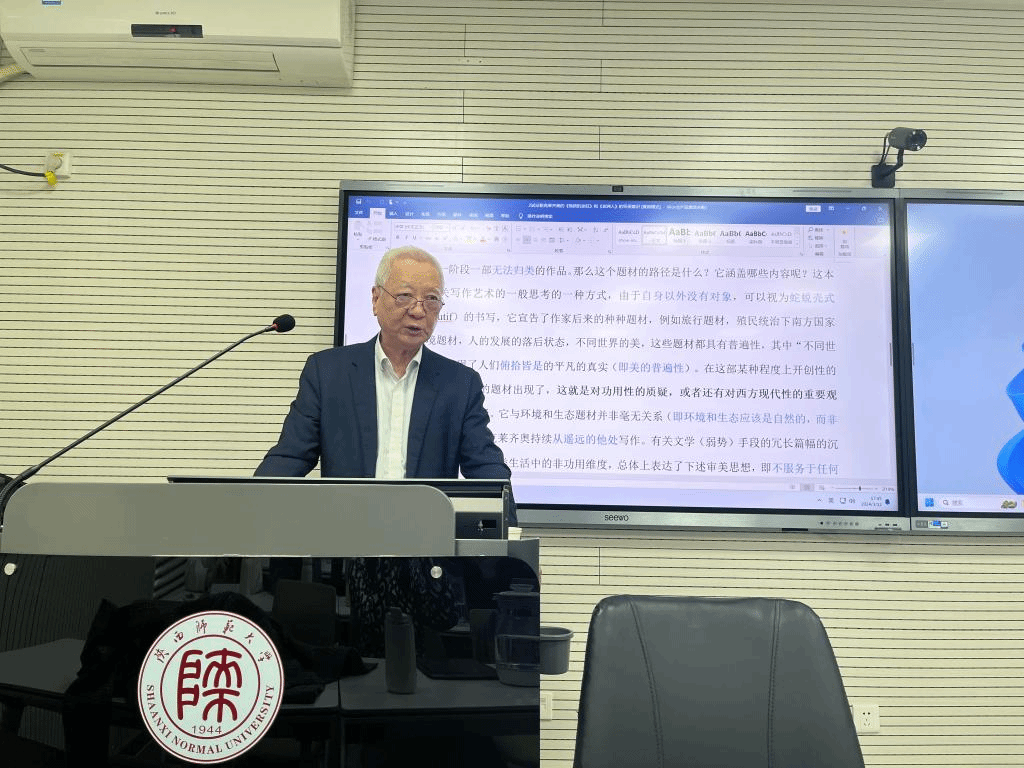 史忠义研究员首先以法国诺贝尔文学奖获得者安妮·埃尔诺的作品引入话题,阐释了“无人称自传”方式的集体记忆对时代变迁的反映、回忆的真实性与虚构等问题;继而谈到法国更早获得诺贝尔文学奖的作家勒克莱齐奥,并对其早期作品《物质的迷狂》与中年时期的作品《非洲人》从若干角度进行分析,揭示两部作品中寓意的普遍性的特点,讲述勒克莱齐奥的生态意识在多种自由思考和联想中的体现,深化了人们对勒克莱齐奥生态意识的理解。