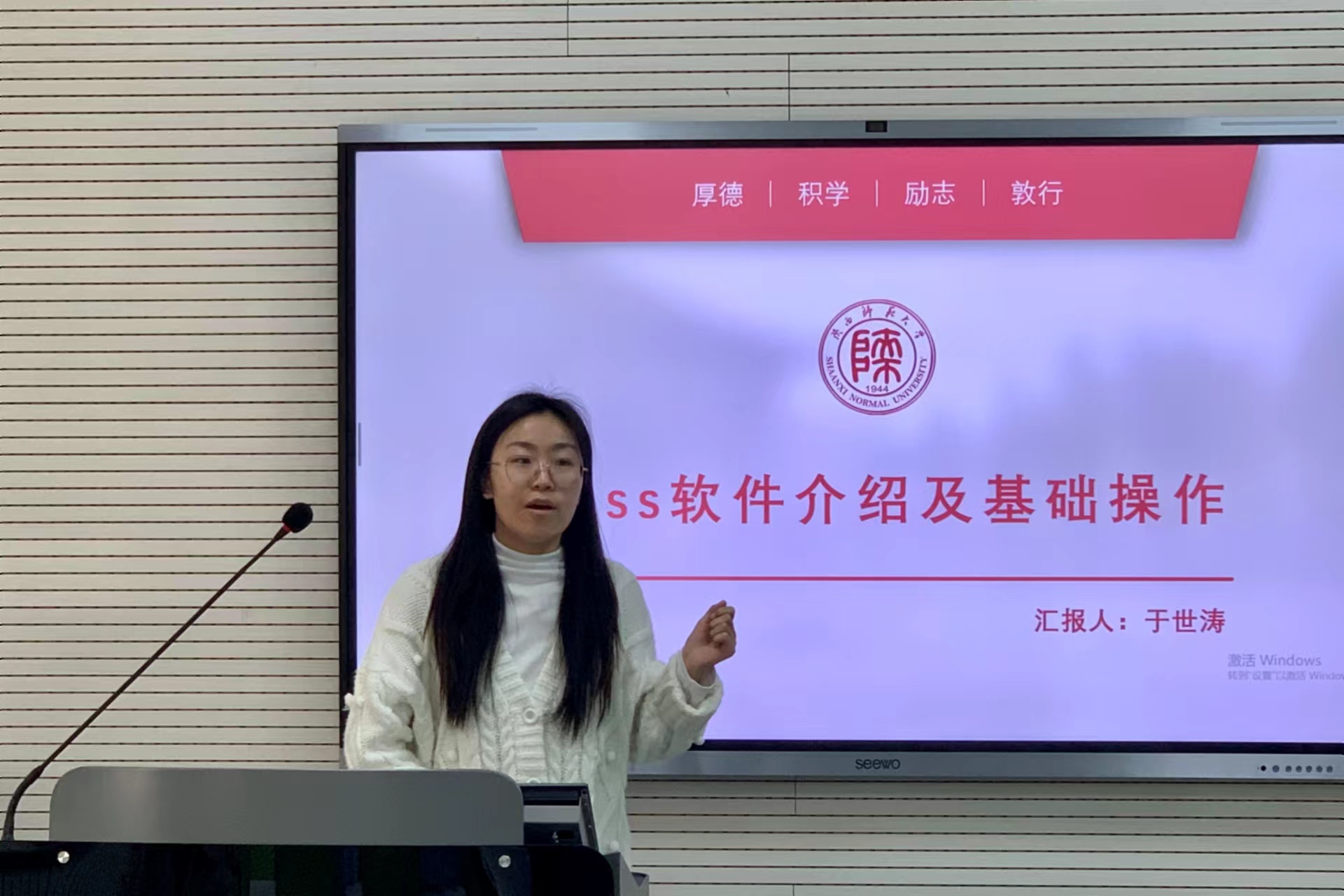 于世涛同学与在座同学展开深入交流,对同学们的相关疑问作耐心解答,并指出在学习和使用SPSS软件过程中可能遇到的困难。她的报告内容充实,不仅展现了研究生求实创新的科研精神,也拓展了同学们的学术视野。