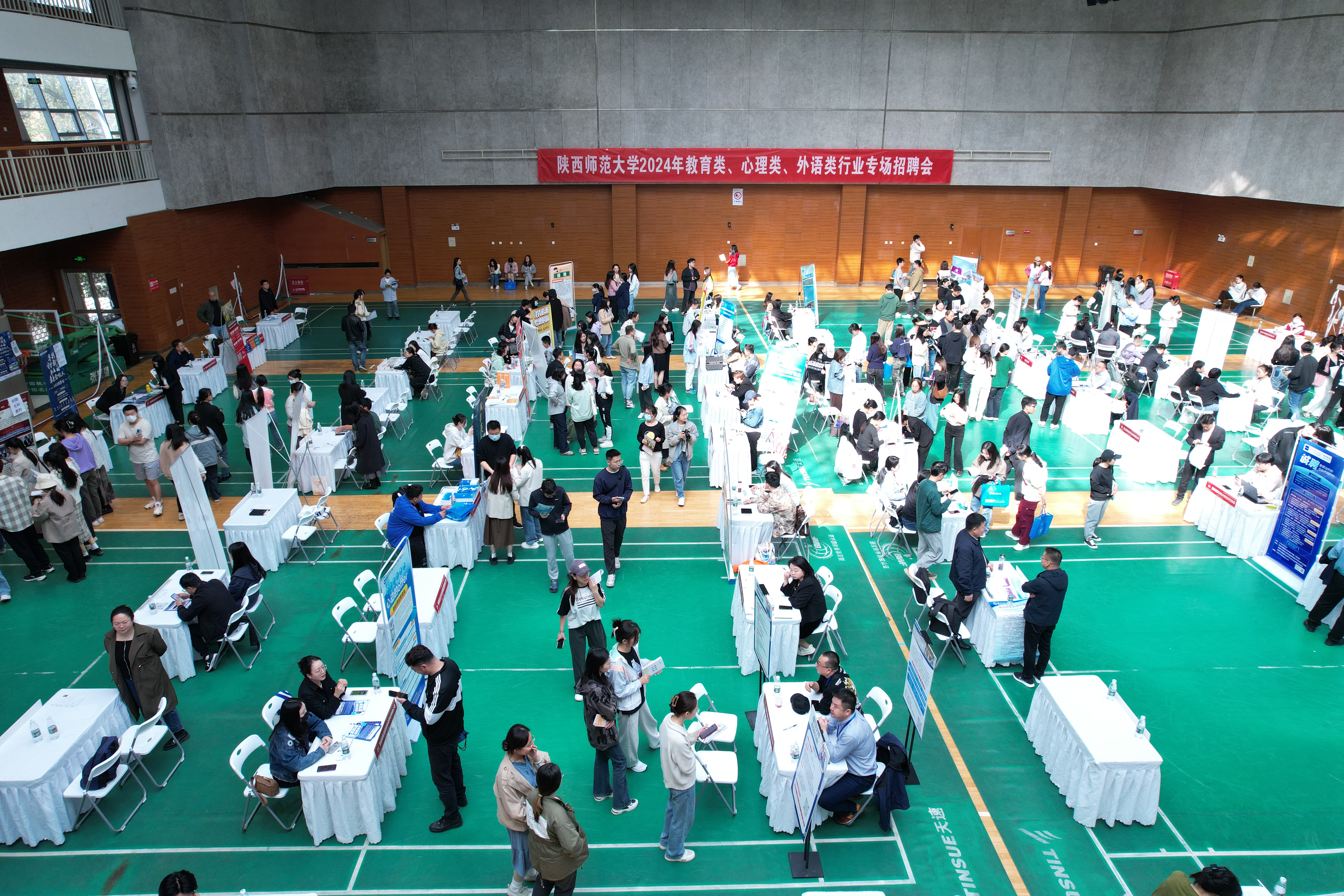 3月31日,由我校招生就业处主办,教育学部、心理学院、76net必赢官网手机版承办的2024年教育类、心理类、外语类行业专场招聘会在雁塔校区体育馆举办。