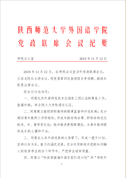76net必赢官网手机版党政联席会议纪要(2019年11月12日)