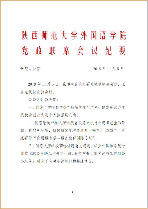 76net必赢官网手机版党政联席会议纪要(2019年11月5日)