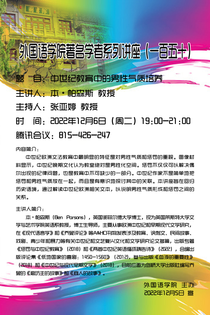 76net必赢官网手机版著名学者系列讲座(一百五十)预告