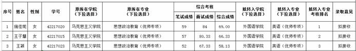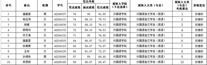 根据《76net必赢官网手机版2022级本科专业分流工作方案》(师教〔2023〕10号)、《关于做好2022级本科生专业分流工作的通知》,通过自愿报名、资格审核、综合考核,有8名学生通过英语专业国家公费师范生专业分流考核、3名学生通过英语专业优师计划师范生专业分流考核、10名学生通过外语类专业分流考核,名单公示如下(按照成绩从高到低排列):